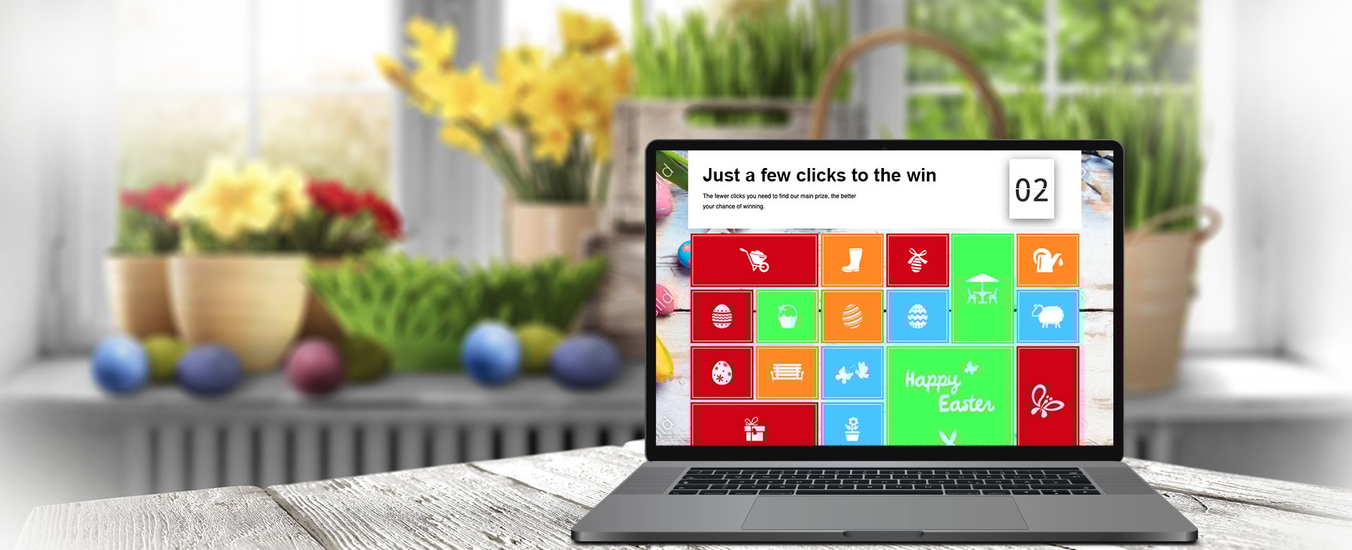 Do you remember Easter in your childhood with the exciting egg hunt through the garden and the children's shining eyes finally discovering the Easter eggs or small gifts? With gamification, you can give adults (such as employees or potential customers) as well the chance to participate in this wonderful hide and seek game! Spring a surprise on them with a professionally designed online Easter game, which individually and according to your wishes as well as target groups ensures a smile every day.